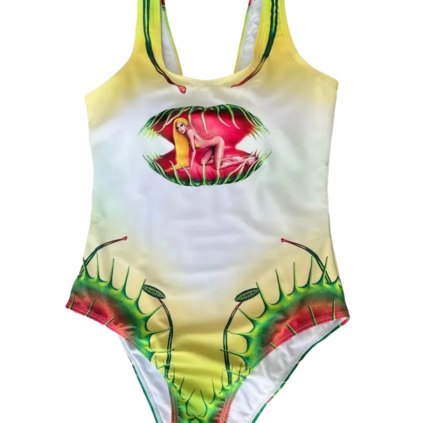 Rock Aquaria in her venus fly trap fantasy on this bathing suit this summer.