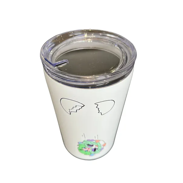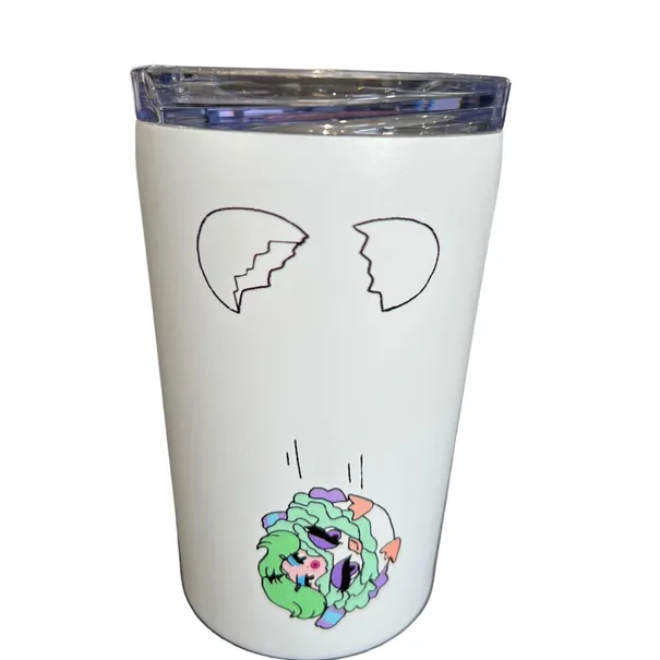 Keep your drink hot or cold in this insulated mug featuring Kim Chi inspired artwork. Only a limited stock available!