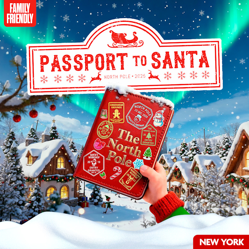 Step into the North Pole with Passport to Santa, an interactive holiday adventure where every child becomes a traveler on a festive quest. Along the way, they’ll toss snowballs with Frosty, train with Rudolph, decorate cookies in Mrs. Claus’ Kitchen, strike toy soldier poses in Nutcracker Kingdom, write wishes with the Christmas Angel, and build sweet creations in Gingerbread Grounds. Each complet