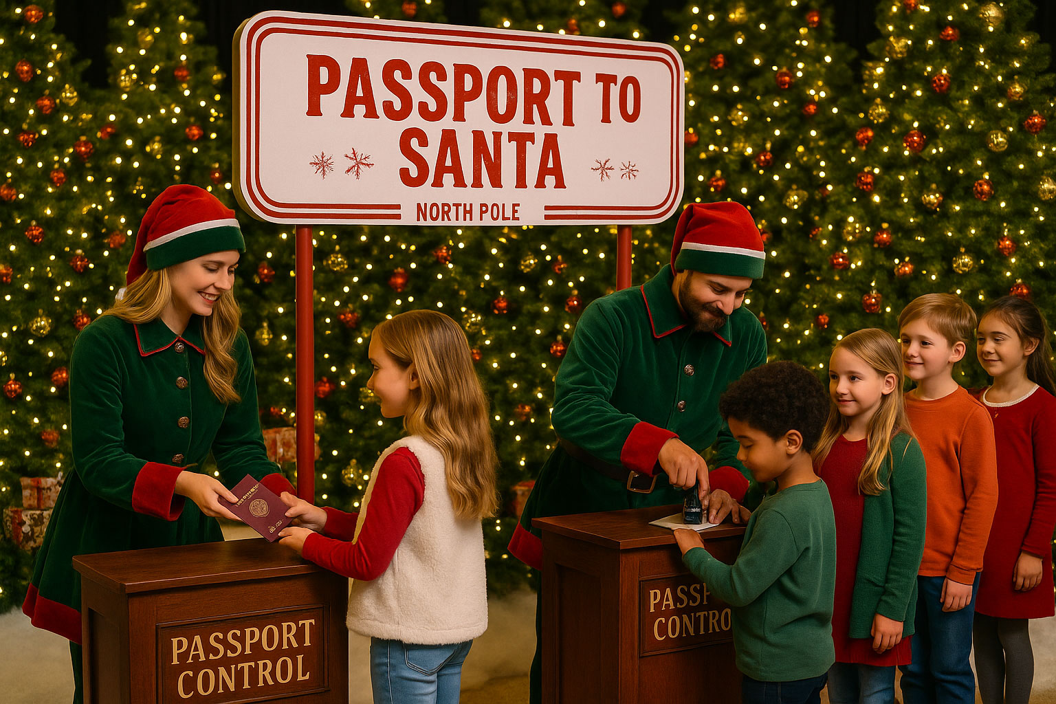 Begin your journey at North Pole Arrivals, where you’ll receive your official Passport to Santa, and get your first stamp before stepping through the gates of holiday wonder.